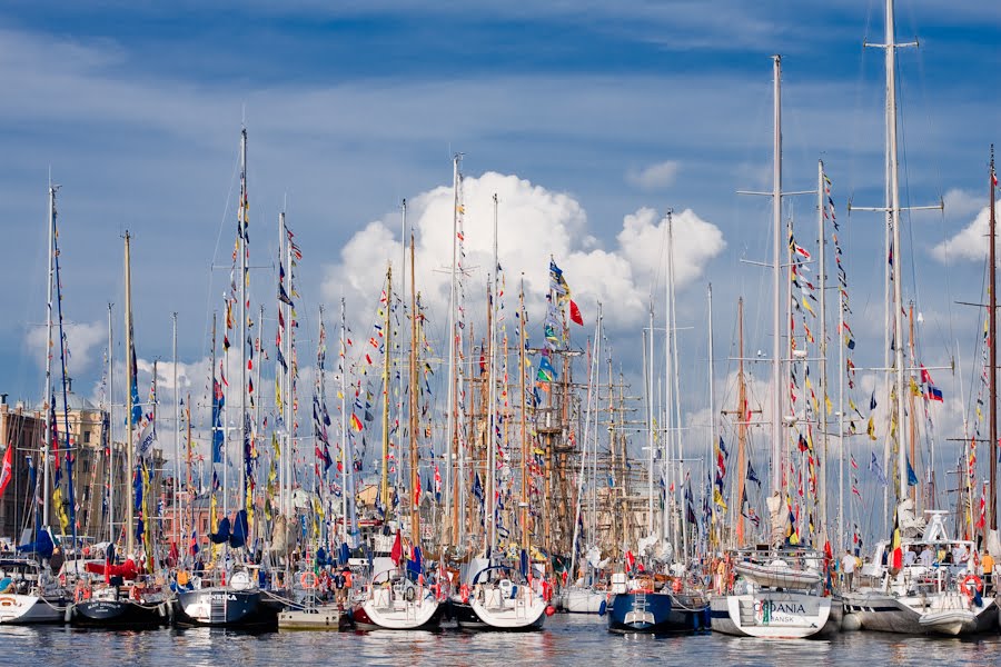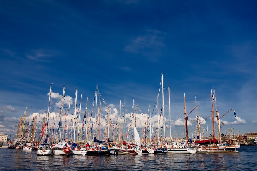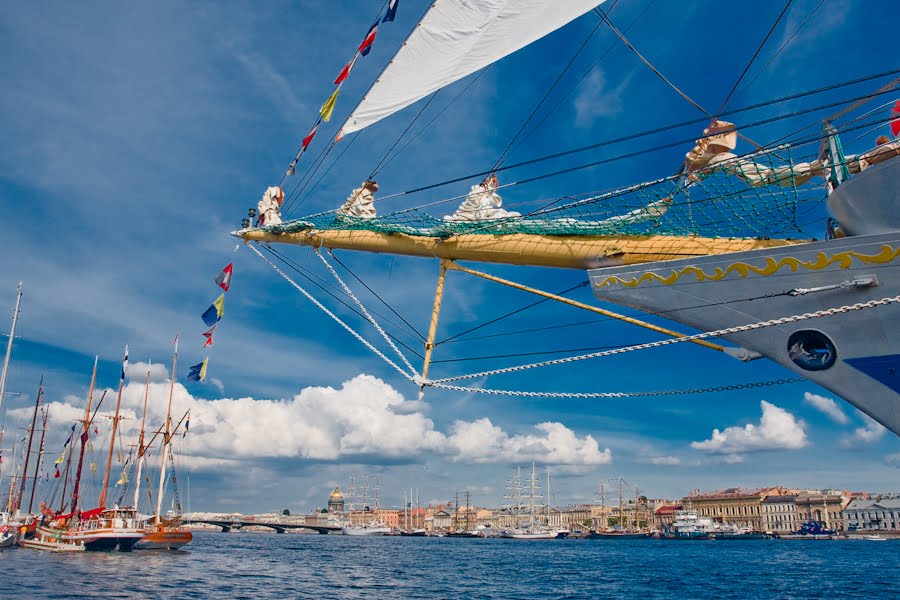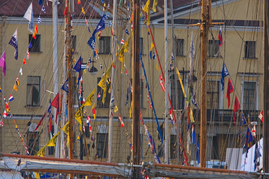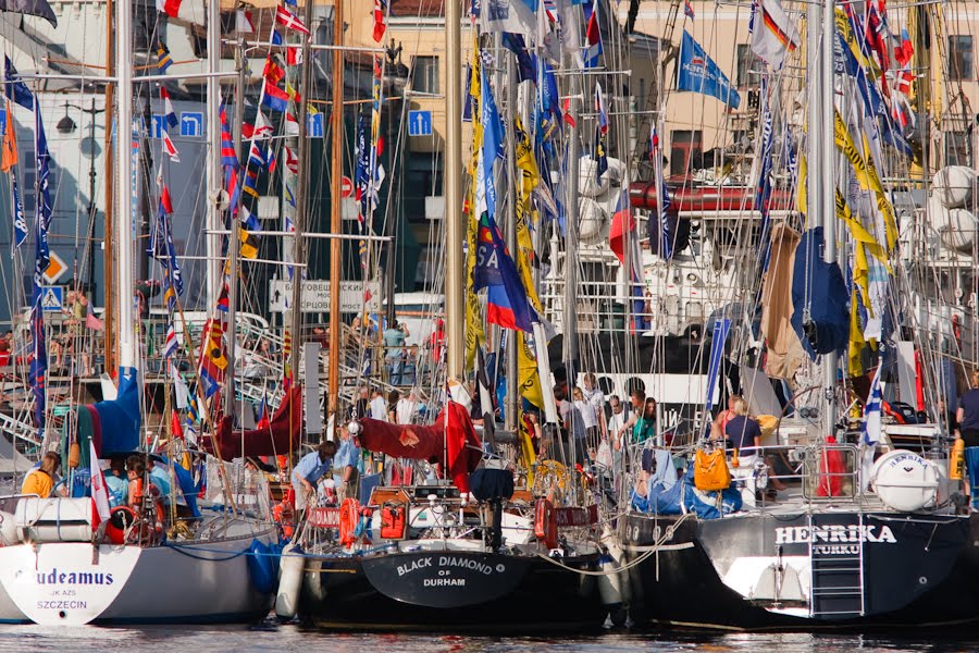 В июле в Петербурге проходил финал парусной регаты Tall Ships Races 2009. Парусники стояли у пристаней на набережной Лейтенанта Шмидта со стороны Васильевского острова и у Английской набережной напротив. На фотографиях есть детали яхт класса C и D, парусников A, B. Это Мир (Санкт-Петербург), Штандартъ (Санкт-Петербург), Седов (Мурманск), Дар Молодёжи (Гданьск?), Georg Stage, Astrid, Grossherzogin Elizabeth, Flying Dutchman, Thalassa, Frederyk Chopin, Valborg, Albanus Aland и другие.